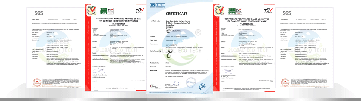 東莞全球環(huán)保科技有限公司總部位于東莞東部地區(qū)、公司致力于全生物降解材料和全生物降解秸稈復合材料的生產(chǎn)研發(fā),專業(yè)提供全生物降解 CCBM系列材科,PBAT、PBS、PLA樹脂及全生物降解膜袋、筒膜、餐具覆膜、阻隔膜、復合包裝膜、衛(wèi)生巾膜等產(chǎn)品。給塑料制造商和消費者提供一站式全品類的解決方案和技術支援。產(chǎn)品已通過德國DIN CERTCO、歐洲TUV公司OK compost HOME認證、國標認證GB/T19277.1-2011:符合歐盟EN13432、美國ASTMD6400、 BPI、澳洲ABA堆肥降解檢測標準,并通過SGS公司檢測的FDA食品接觸安全測試、ROHS有害物質檢測、REACH檢測。我司獲得國家高新技術企業(yè)認證、通過了GRS驗廠并且取得了GRS認證,產(chǎn)品熱銷于歐洲、美國、亞洲等30多個國家。